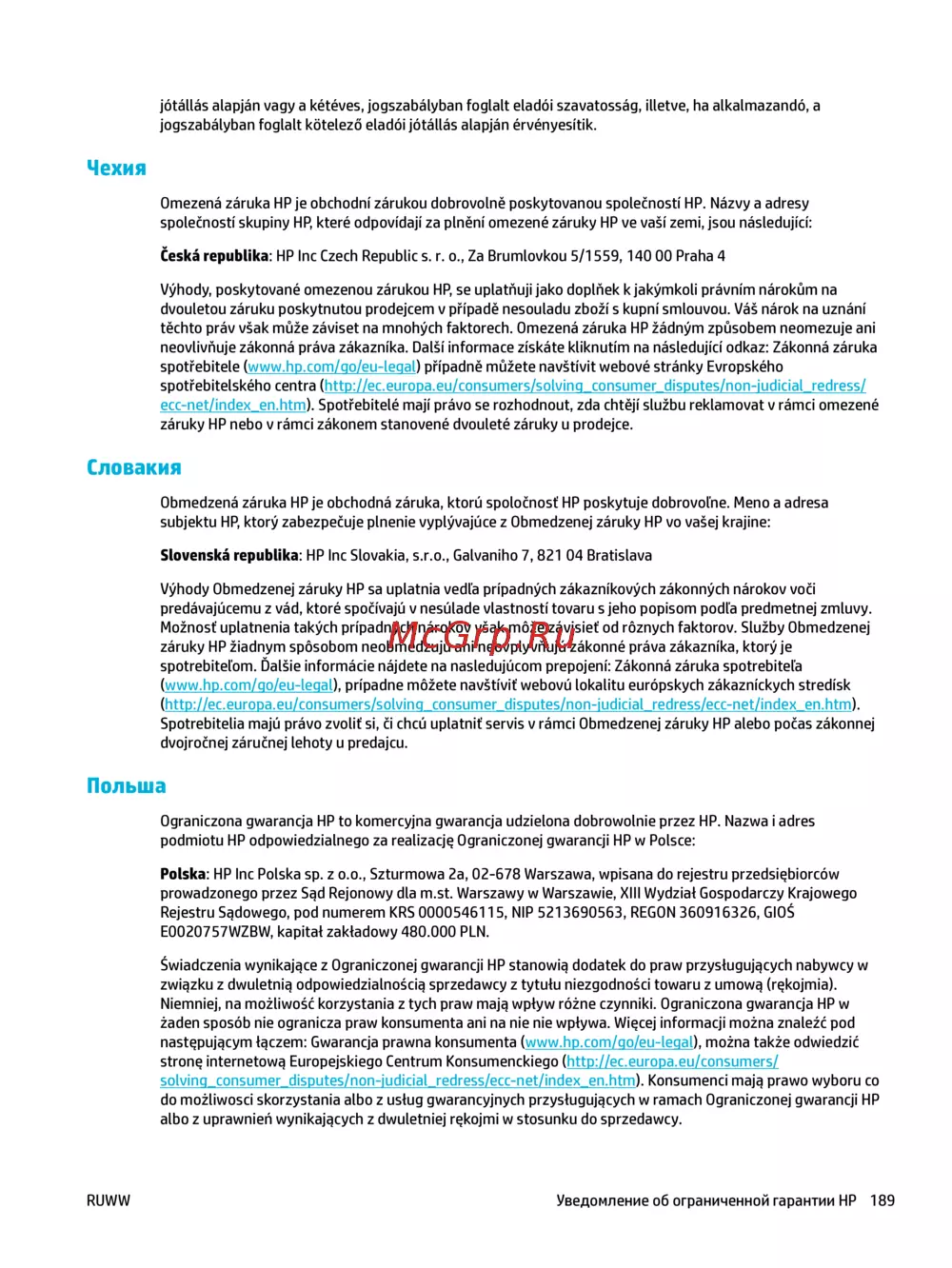 następującym łączem: Gwarancja prawna konsumenta (www.hp.com/go/eu-legal), można także odwiedzić