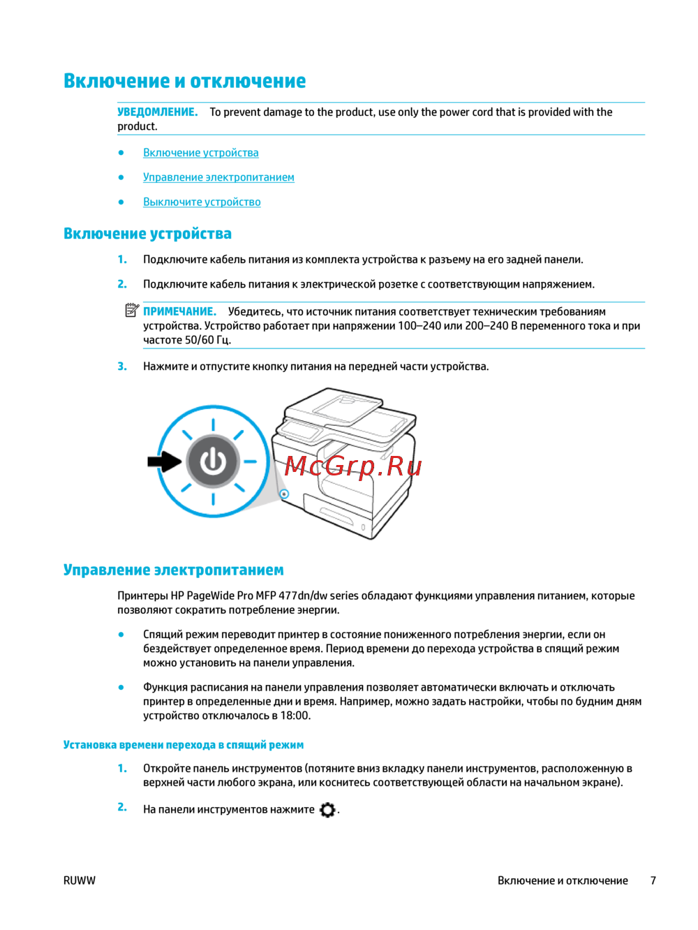 HP pagewide pro 477dw [23/231] Управление электропитанием