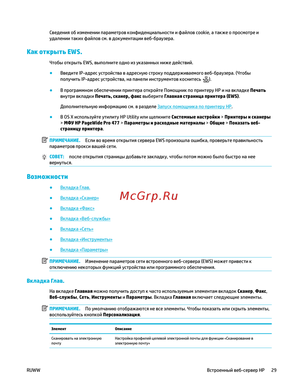 HP pagewide pro 477dw — как открыть веб-сервер устройства и изменить настройки конфиденциальности [45/231]