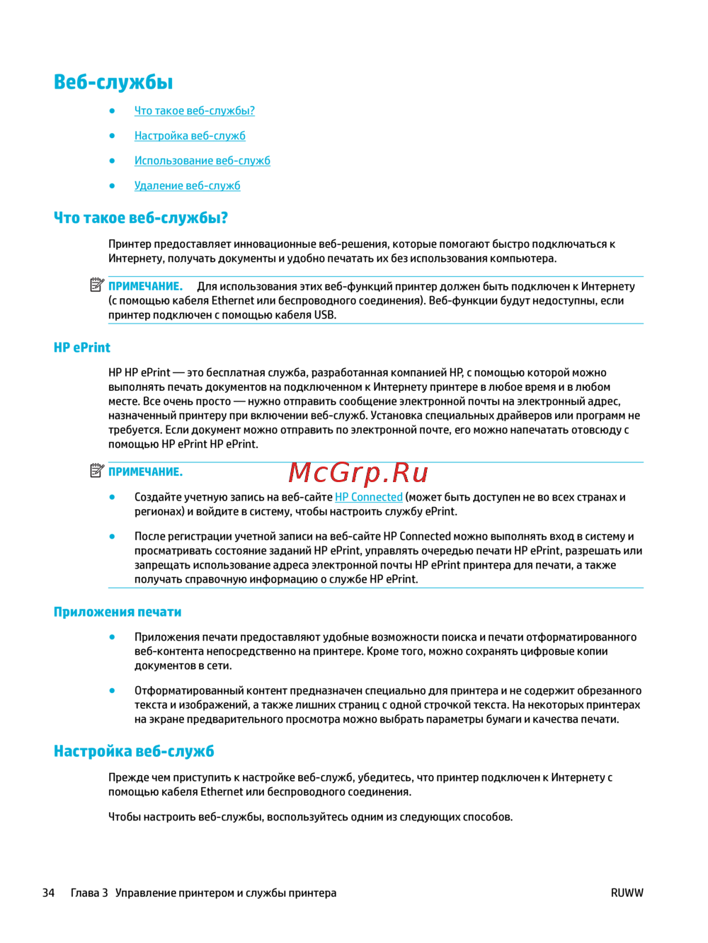 34 Глава 3 Управление принтером и службы принтера RUWW