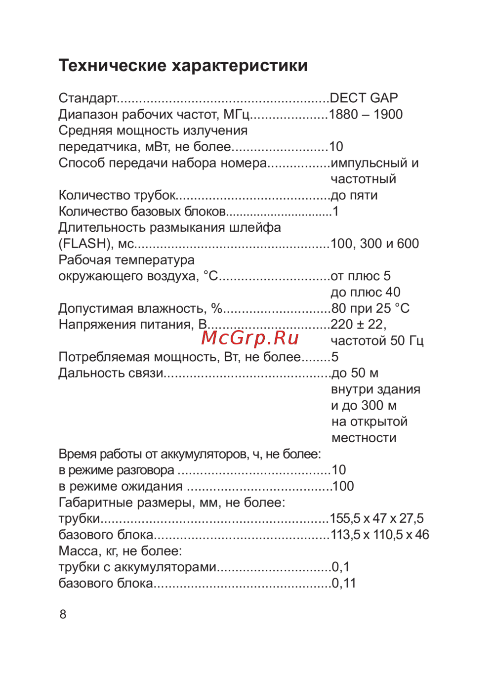 Узнайте о технических характеристиках беспроводных телефонов DECT GAP, включая диапазон частот, мощность, дальность связи и другие важные параметры.