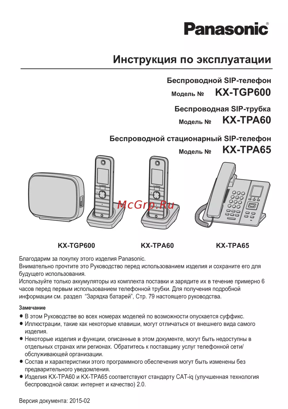 - Выполнение анонимных вызовов только при подключении к модели kx tgp600 p.74