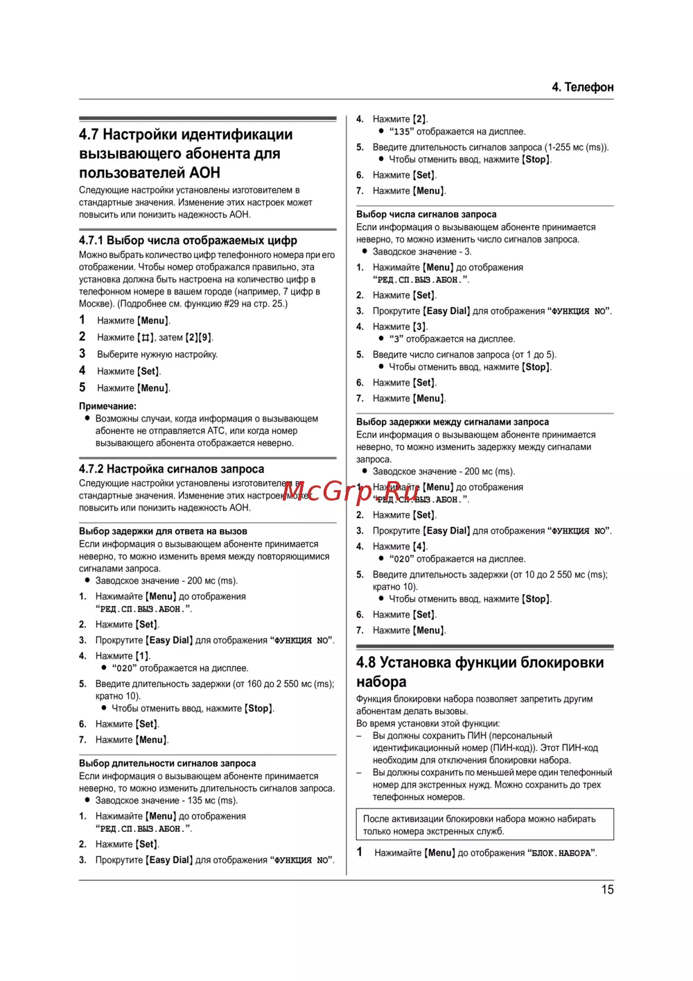 Panasonic KX-FT502RUW [15/48] Установка функции блокировки набора