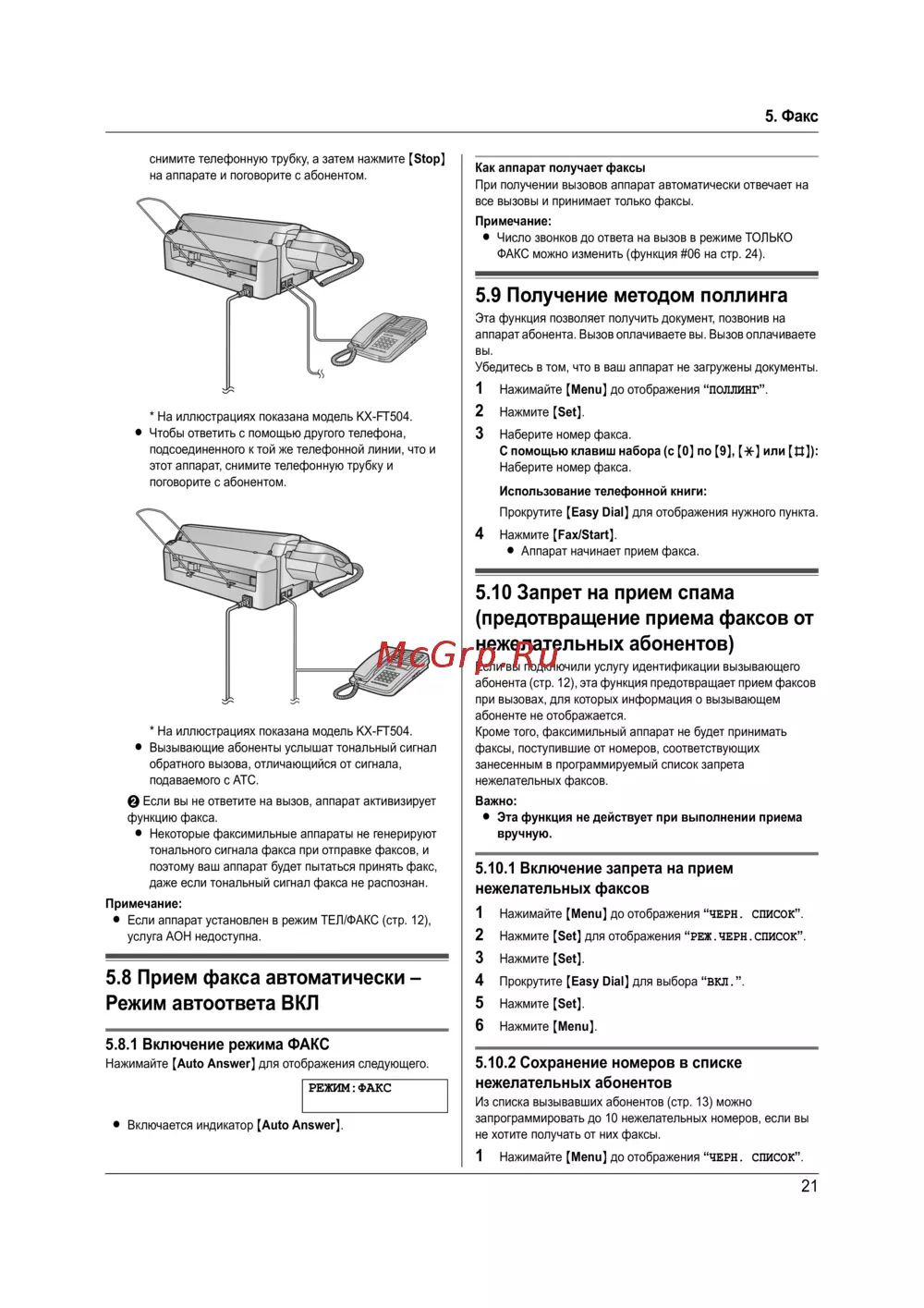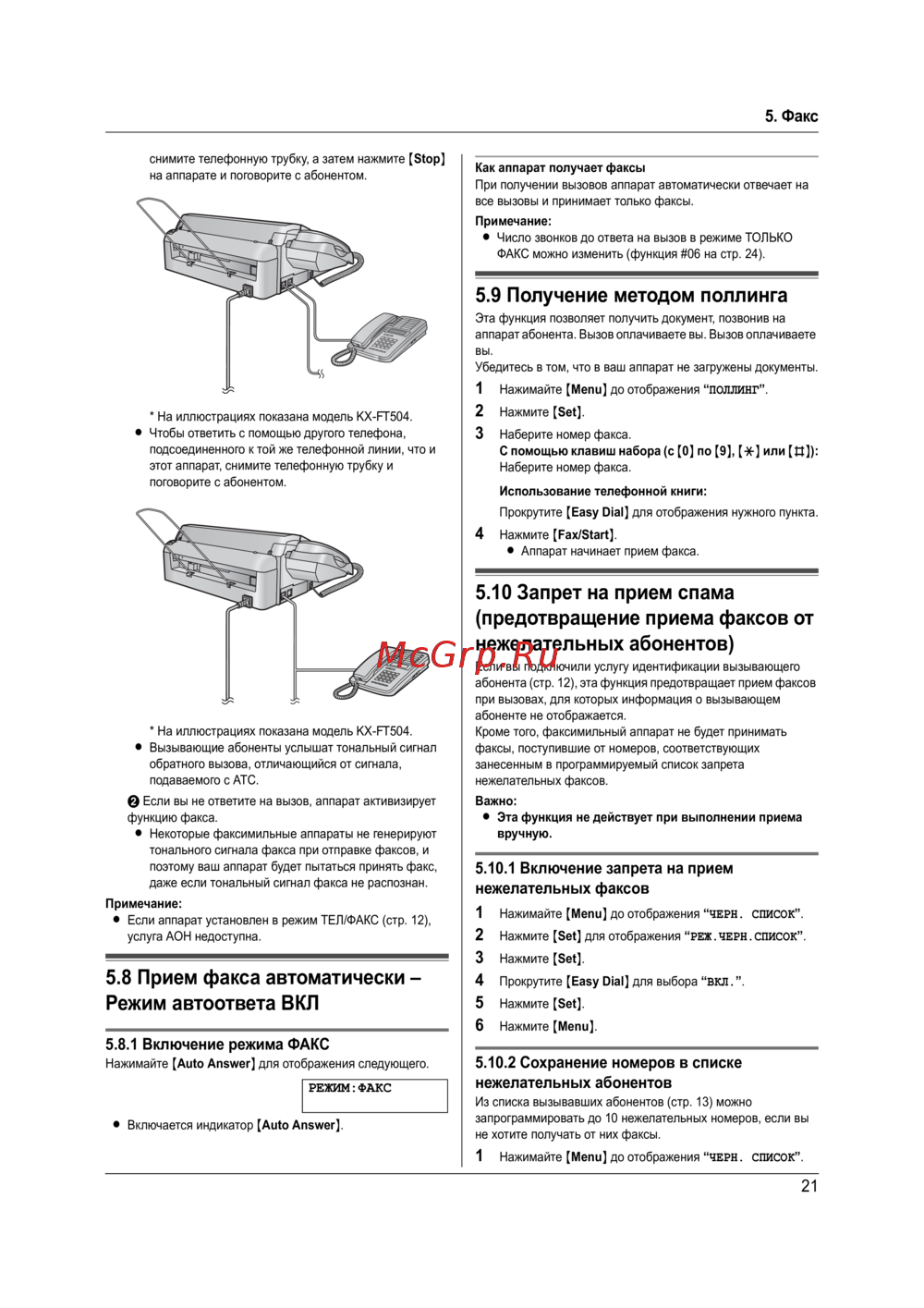 5.8 Прием факса автоматически –