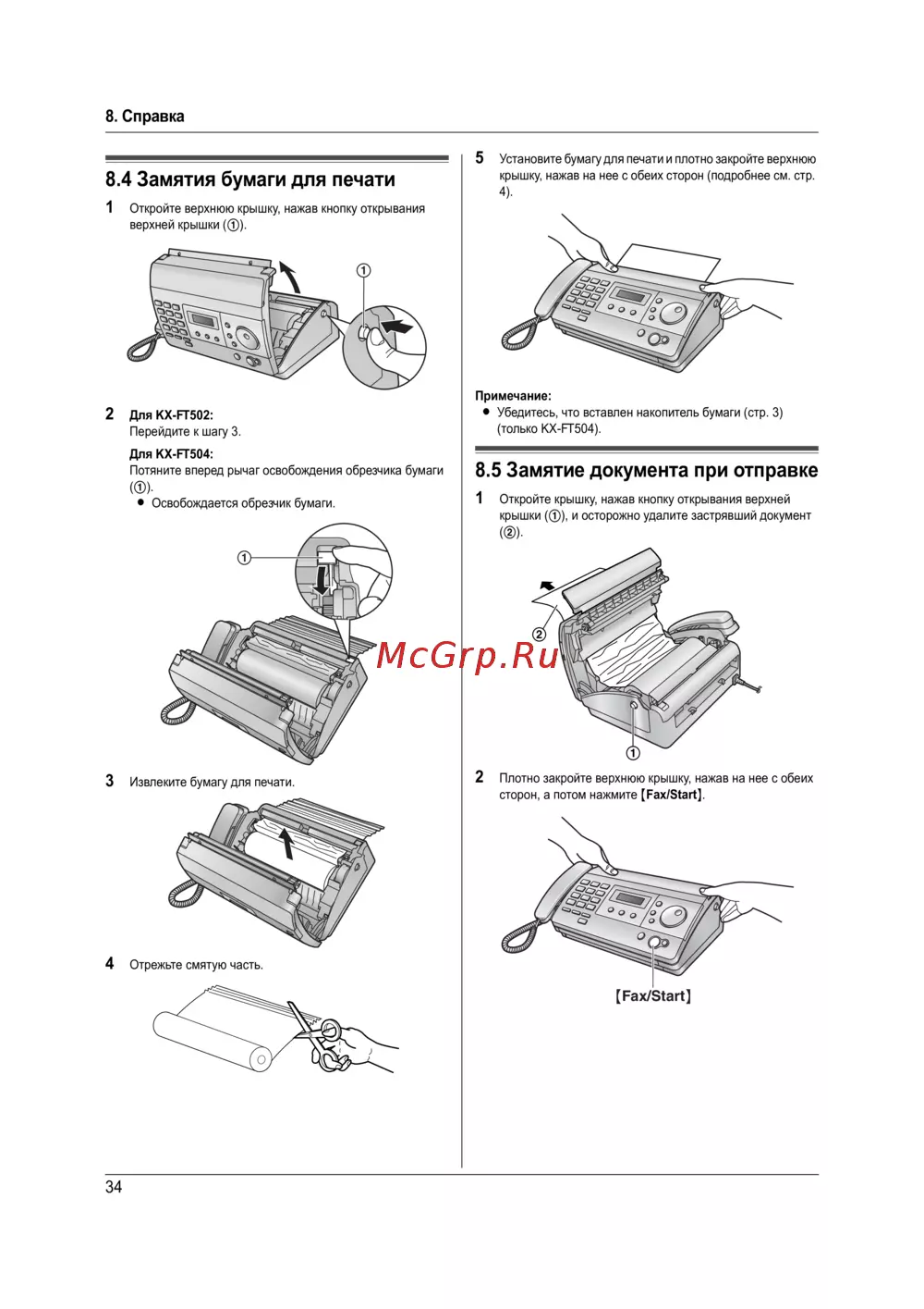 Panasonic KX-FT502RUW — инструкция по устранению замятий бумаги в устройствах печати [34/48]