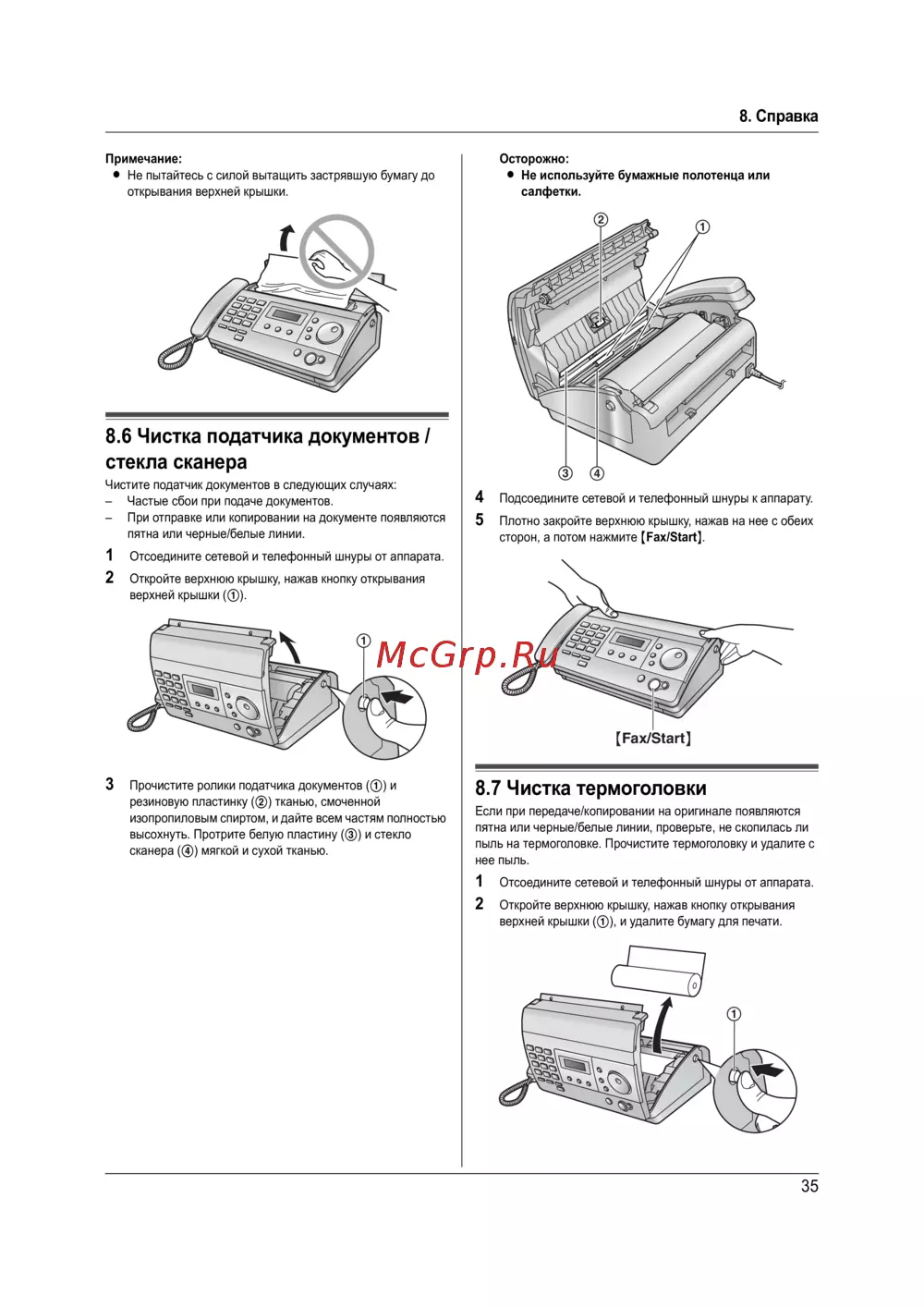 Panasonic KX-FT502RUW — руководство по чистке сканера и податчика документов [35/48]