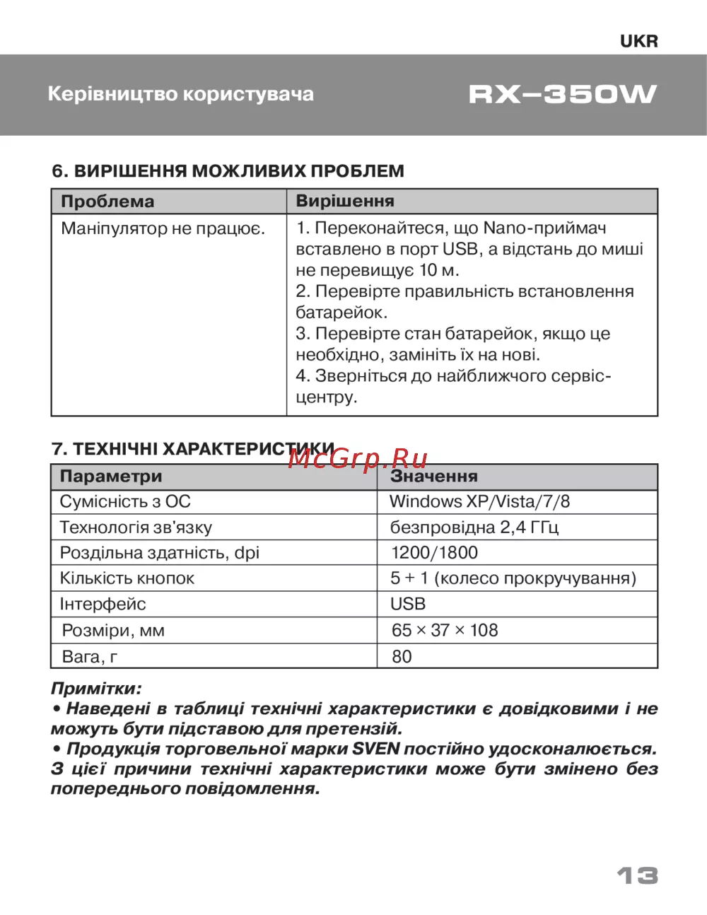 Sven rx-350 wireless — технічні характеристики та вирішення проблем безпровідної миші [14/22]