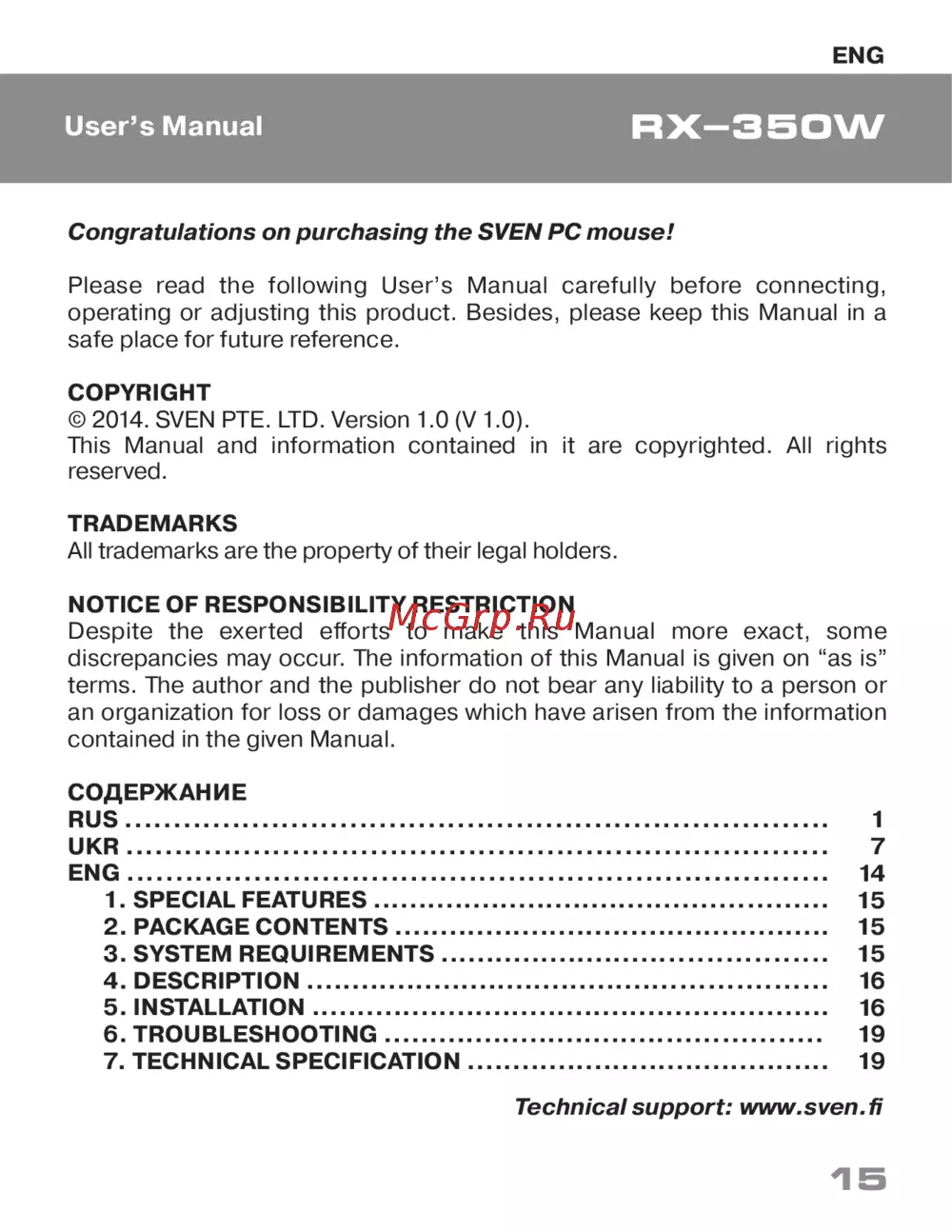 © 2014. SVEN PTE. LTD. Version 1.0 (V 1.0).
