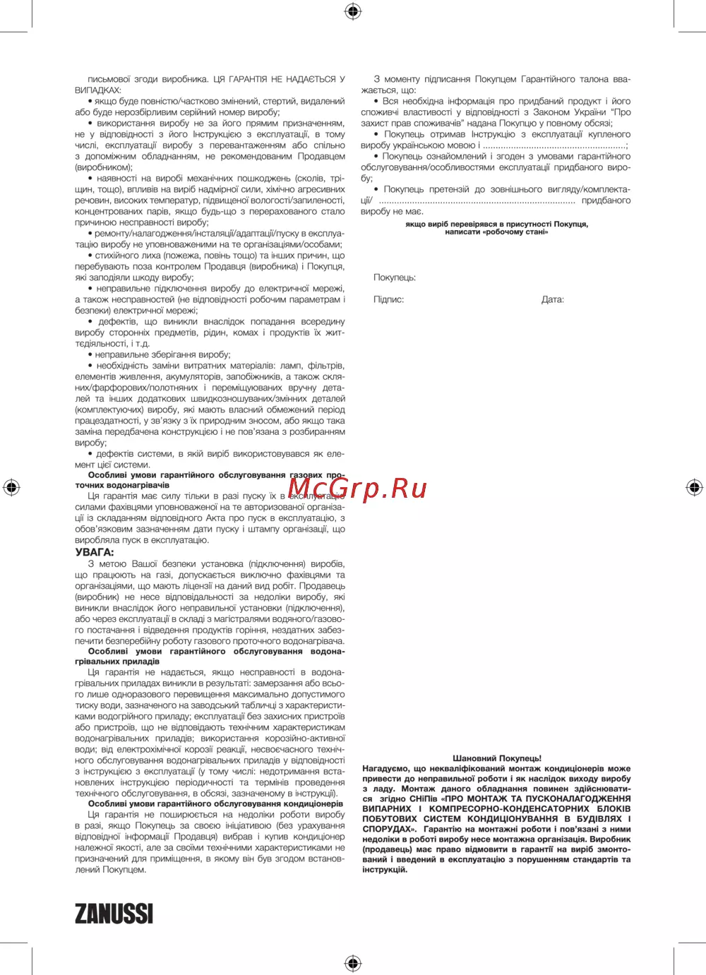 Zanussi gwh 10 fonte glass metropoli — умови гарантії на побутові прилади та їх обслуговування [29/34]