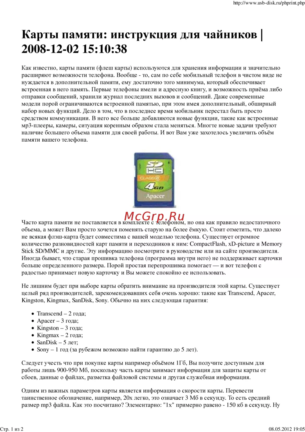 Как известно, карты памяти (флеш карты) используются для хранения информации и значительно