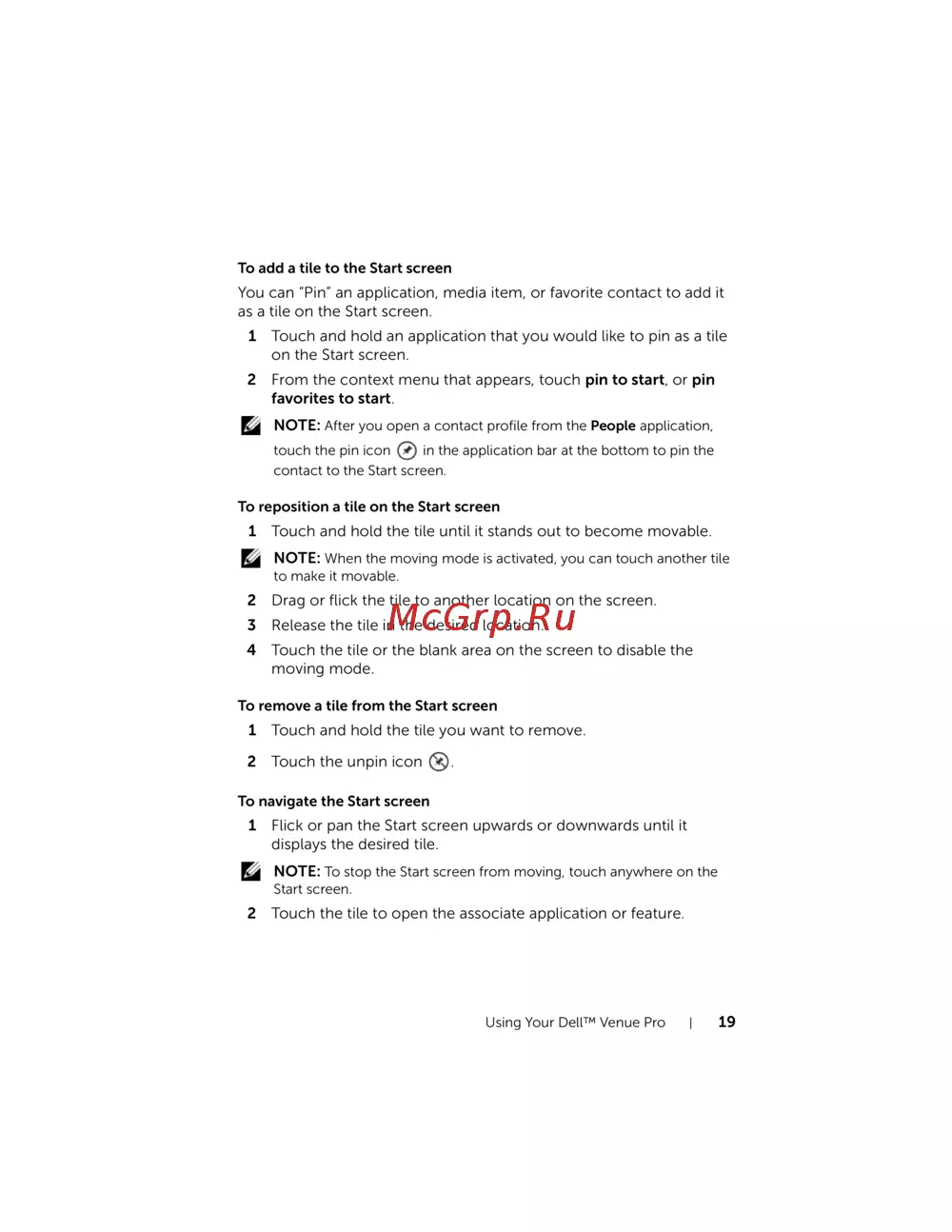 Dell Venue Pro [19/107] To reposition a tile on the start screen