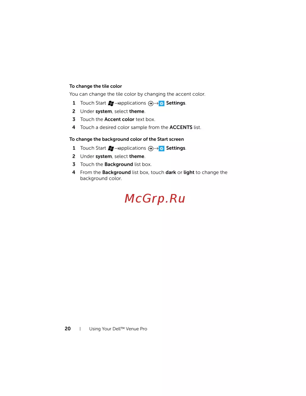 ![Dell Venue Pro [20/107] To change the tile color](/views2/1002268/page20/bg14.png)