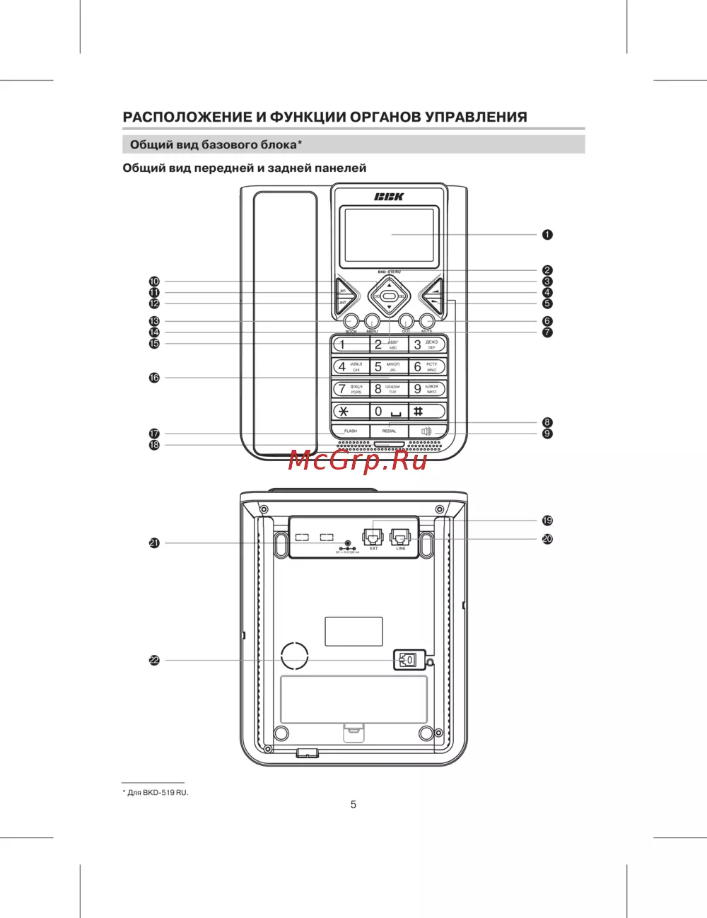 РАСПОЛОЖЕНИЕ И ФУНКЦИИ ОРГАНОВ УПРАВЛЕНИЯ Общий вид базового блока Общий вид передней и задней панелей О Оф О Для ВКО 519К1 5