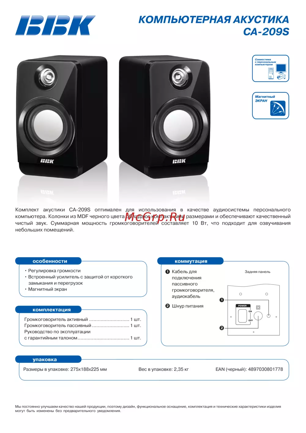 - Комплект акустики ca 209s оптимален для использования в качестве аудиосистемы персонального компьютера колонки из mdf черного цвета обладают компактными размерами и обеспечивают качественный чистый звук суммарная мощность громкоговорителей составляет 10 вт что подходит для озвучивания небольших помещений p.1