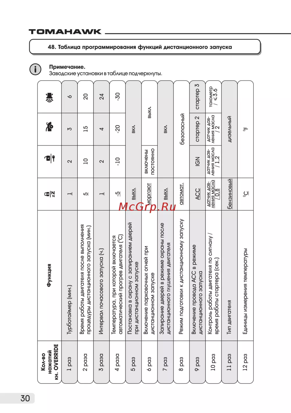 Tomahawk Z5 — функции дистанционного запуска и контроля двигателя [30/49]
