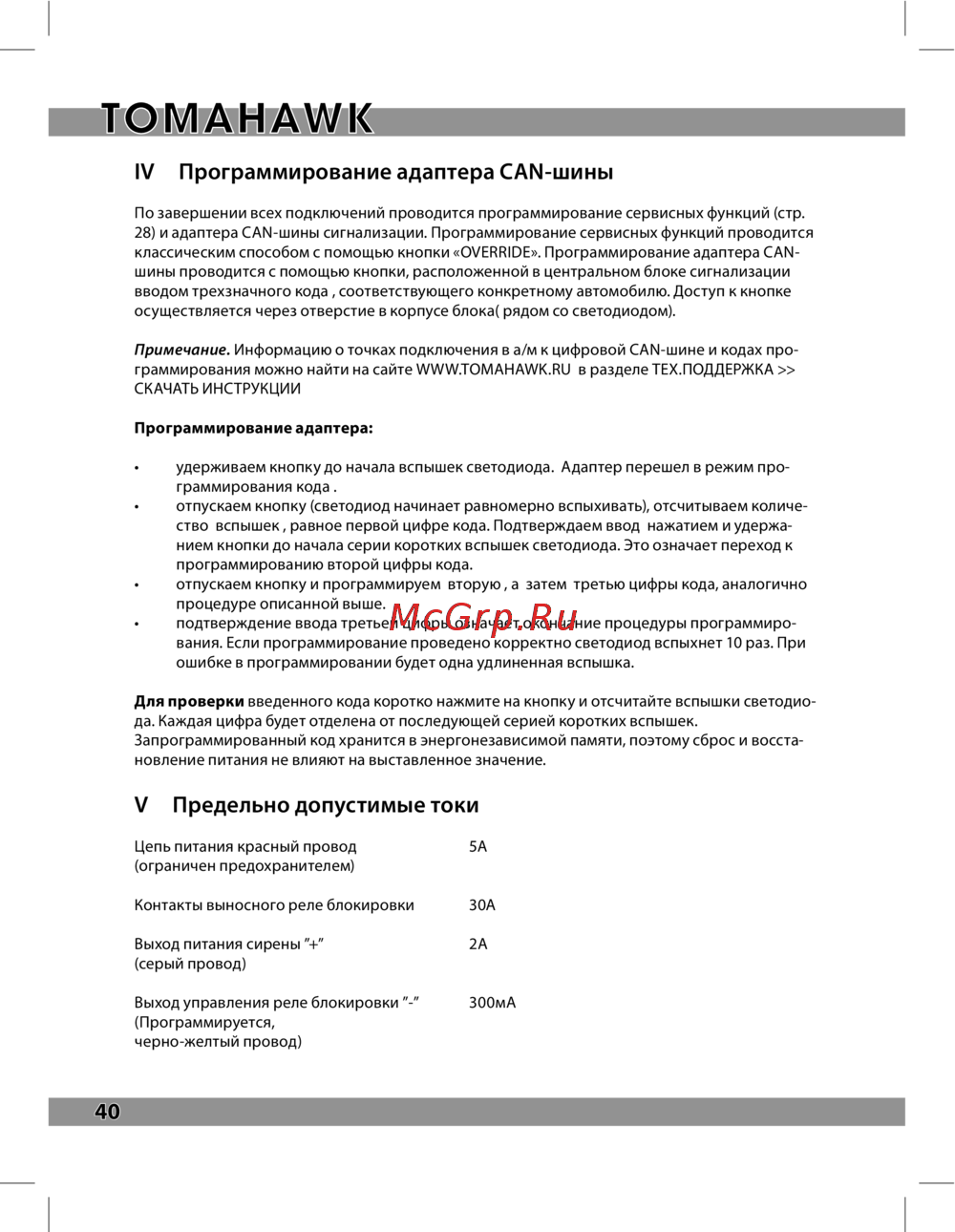 граммирования можно найти на сайте WWW.TOMAHAWK.RU в разделе ТЕХ.ПОДДЕРЖКА >>