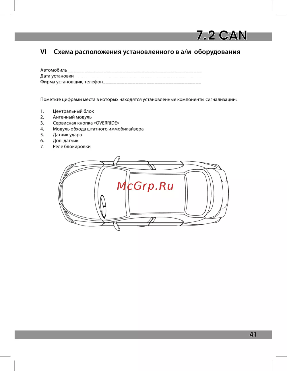 Tomahawk 7.2 CAN [41/44] Vi схема расположения установленного в а м оборудования