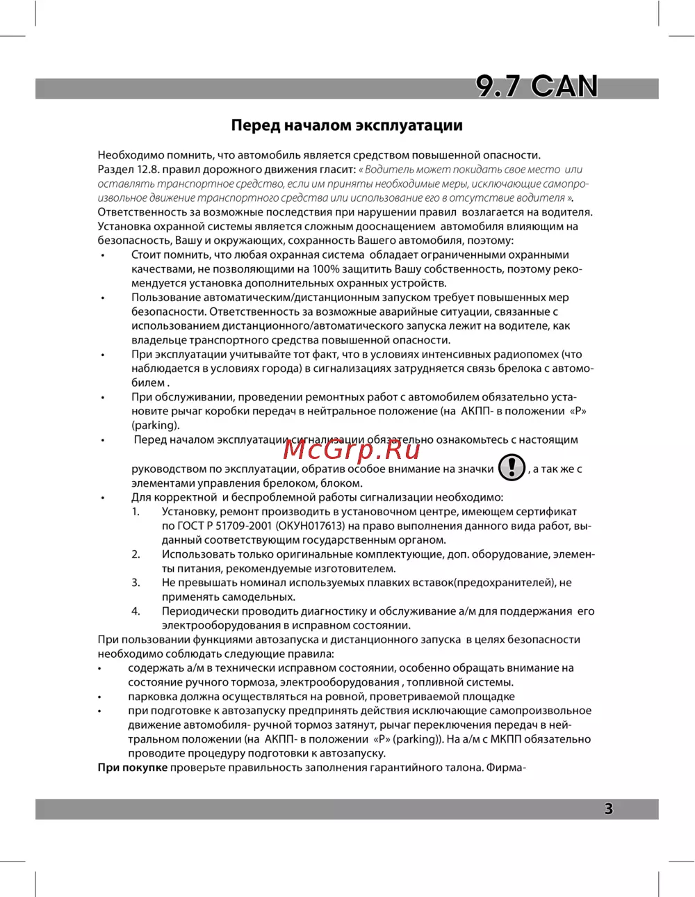 Tomahawk 9.7 CAN — правила эксплуатации автомобиля и охранных систем безопасности [3/52]