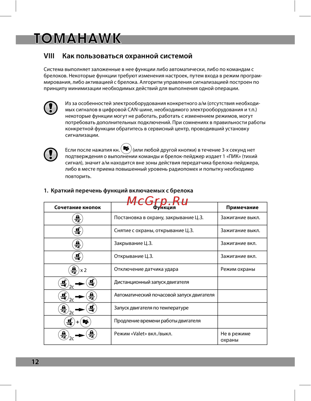 ![Tomahawk G-9000 CAN [12/56] Краткий перечень функций включаемых с брелока](/views2/1227489/page12/bgc.png)