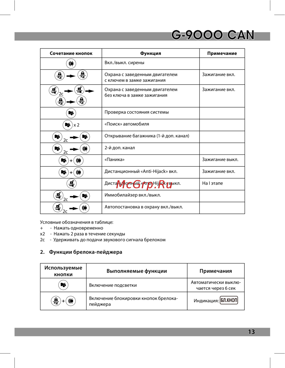 Tomahawk G-9000 CAN — основные функции автомобильного брелока: охрана, поиск, паника и иммобилайзер [13/56]