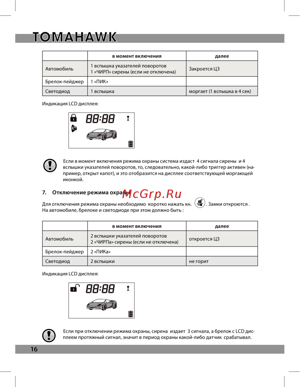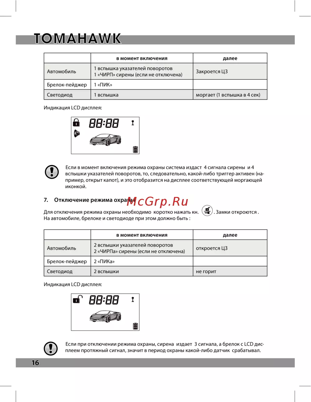 Tomahawk G-9000 CAN — инструкция по отключению режима охраны автомобиля [16/56]