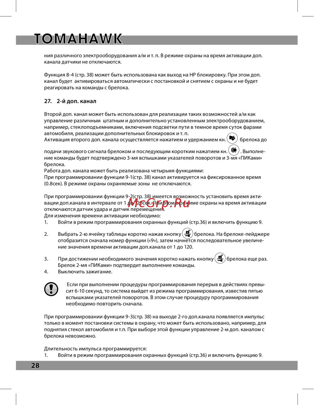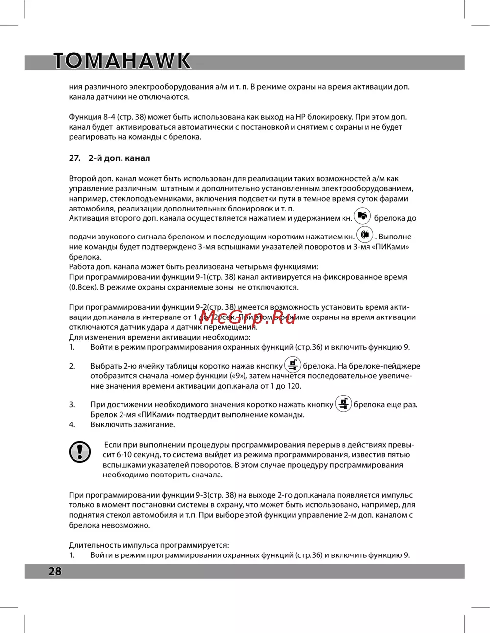 Tomahawk G-9000 CAN — управление дополнительными каналами охранной системы автомобиля [28/56]