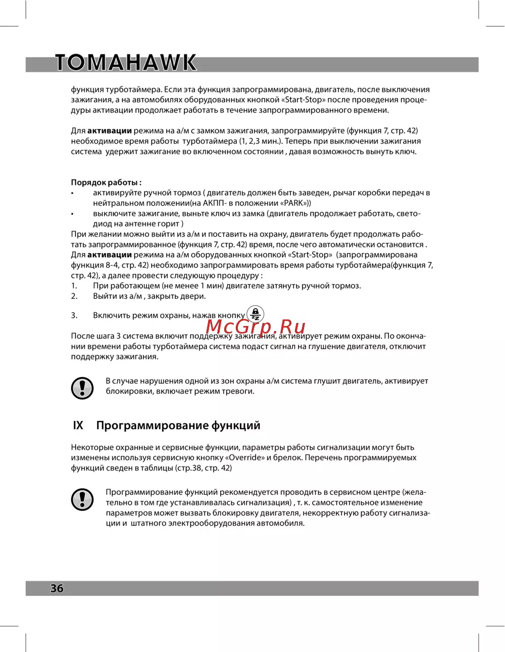 Tomahawk G-9000 CAN — функция турботаймера: активация и программирование для автомобилей [36/56]