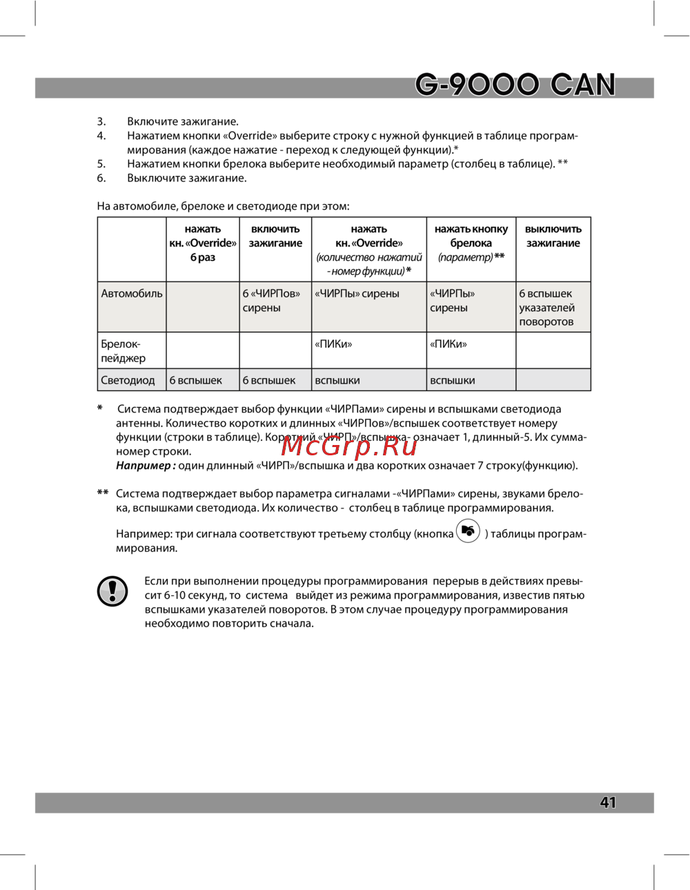 Tomahawk G-9000 CAN — инструкция по программированию автомобильной сигнализации [41/56]