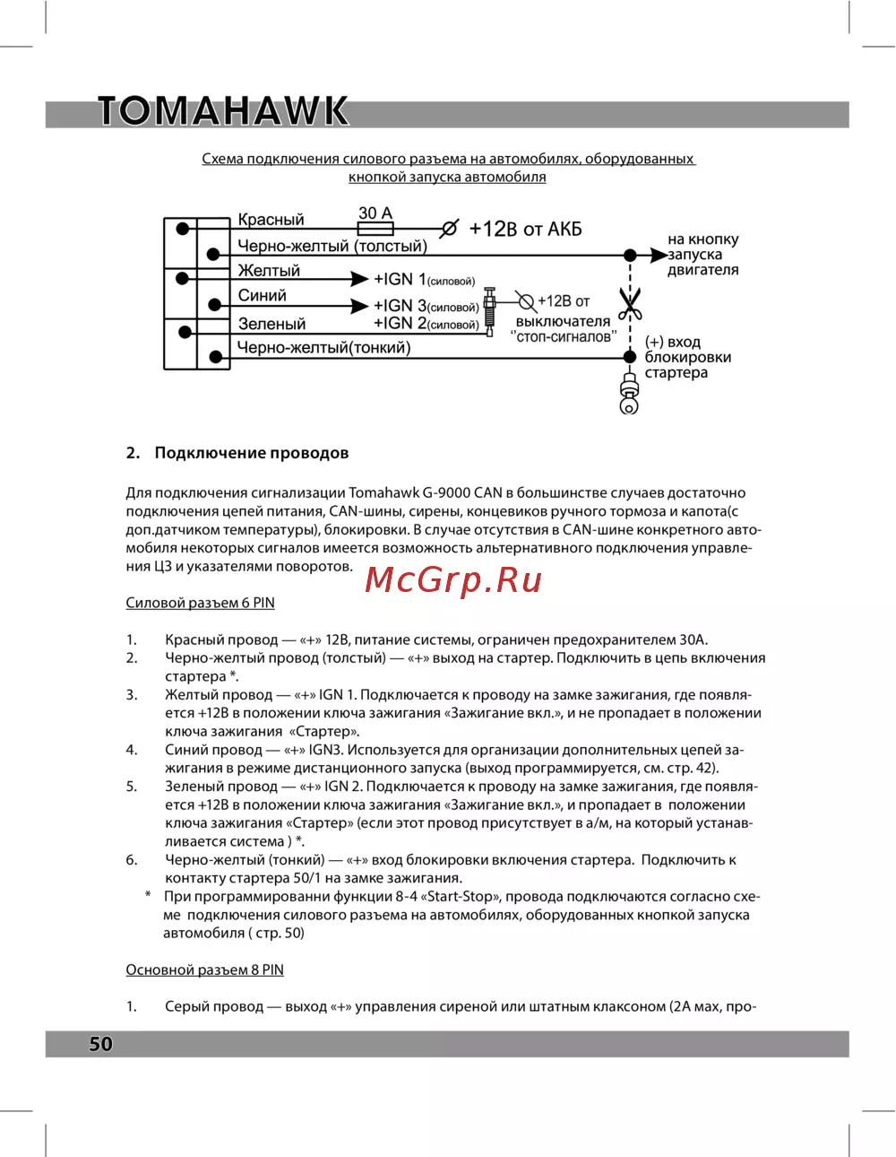 ![Tomahawk G-9000 CAN [50/56] Подключение проводов](/views2/1227489/page50/bg32.png)