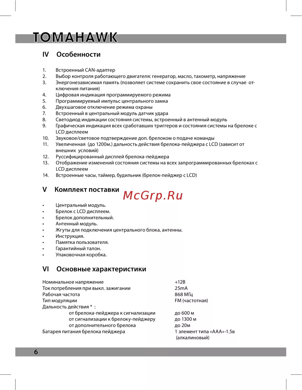 ![Tomahawk G-9000 CAN [6/56] Vi основные характеристики](/views2/1227489/page6/bg6.png)