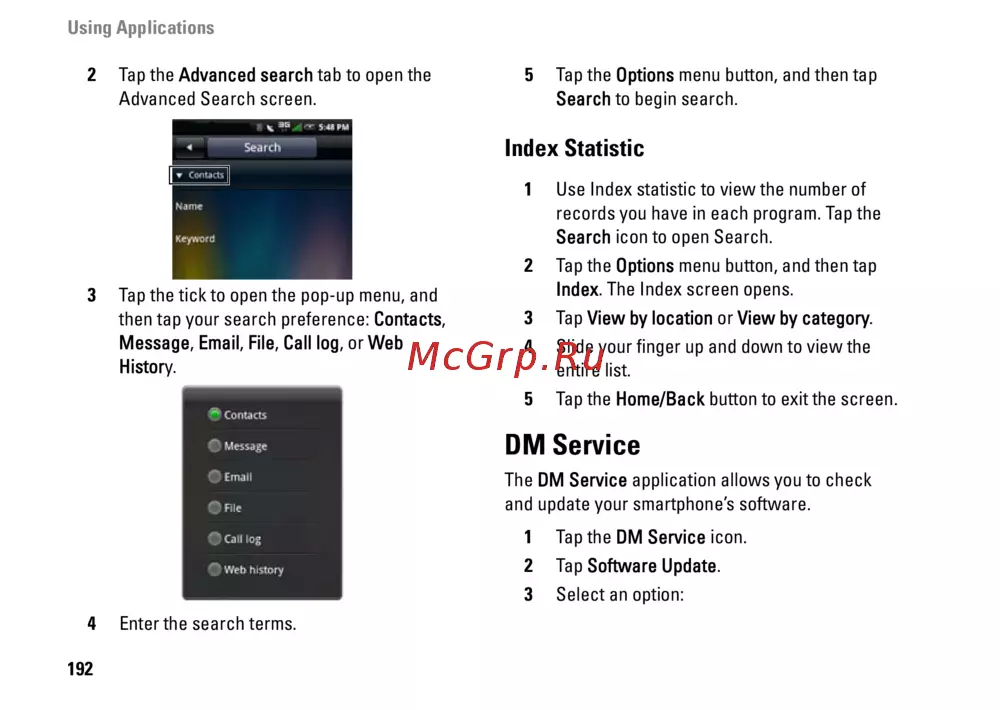 - Restore your mobile contacts messages and settings from the backup file p.193