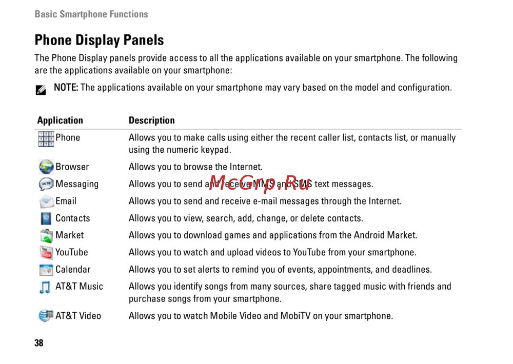 NOTE: The applications available on your smartphone may vary based on the model and configuration.