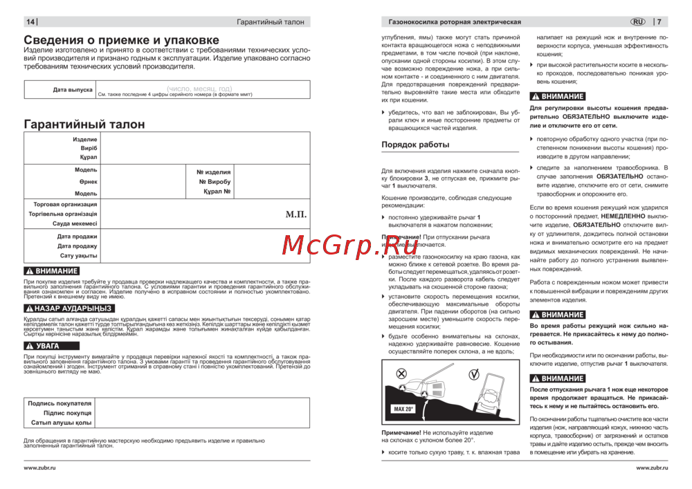 Зубр ЗГКЭ-42-1800Руководство по эксплуатации -