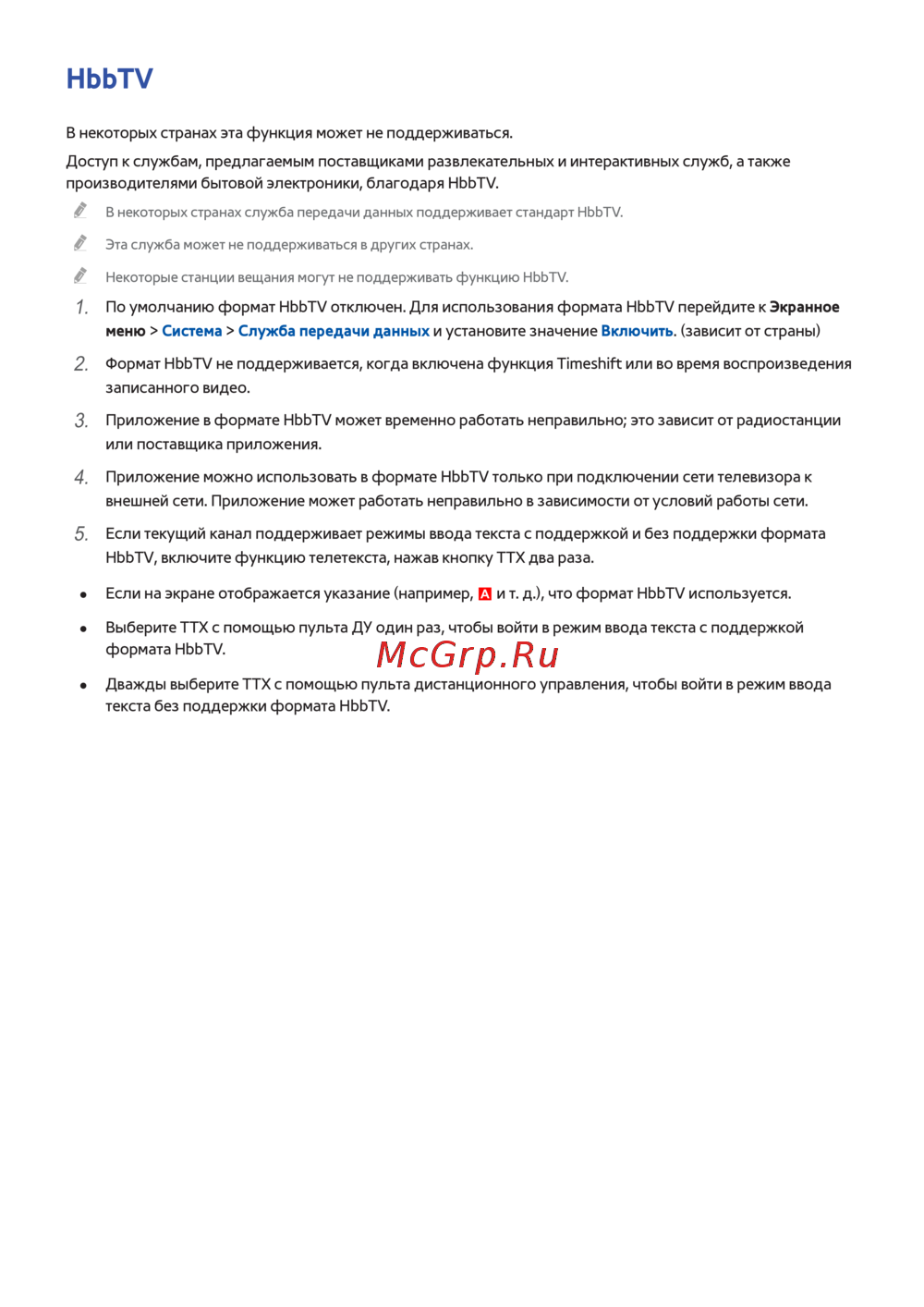 По умолчанию формат HbbTV отключен. Для использования формата HbbTV перейдите к Экранное
