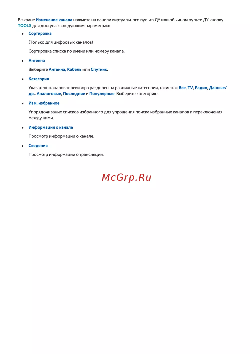 - Управление спутниковыми каналами когда для параметра антенна установлено значение спутник p.159