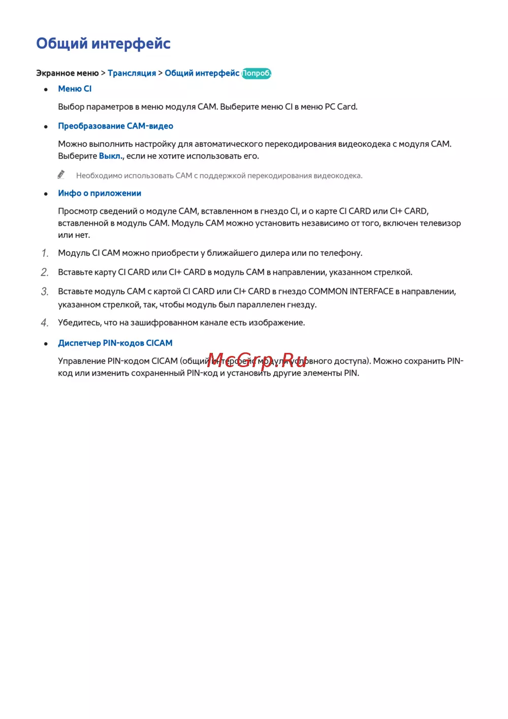 Samsung UE32F5300AK — настройка модуля CAM и управление PIN-кодом CICAM [30/194]