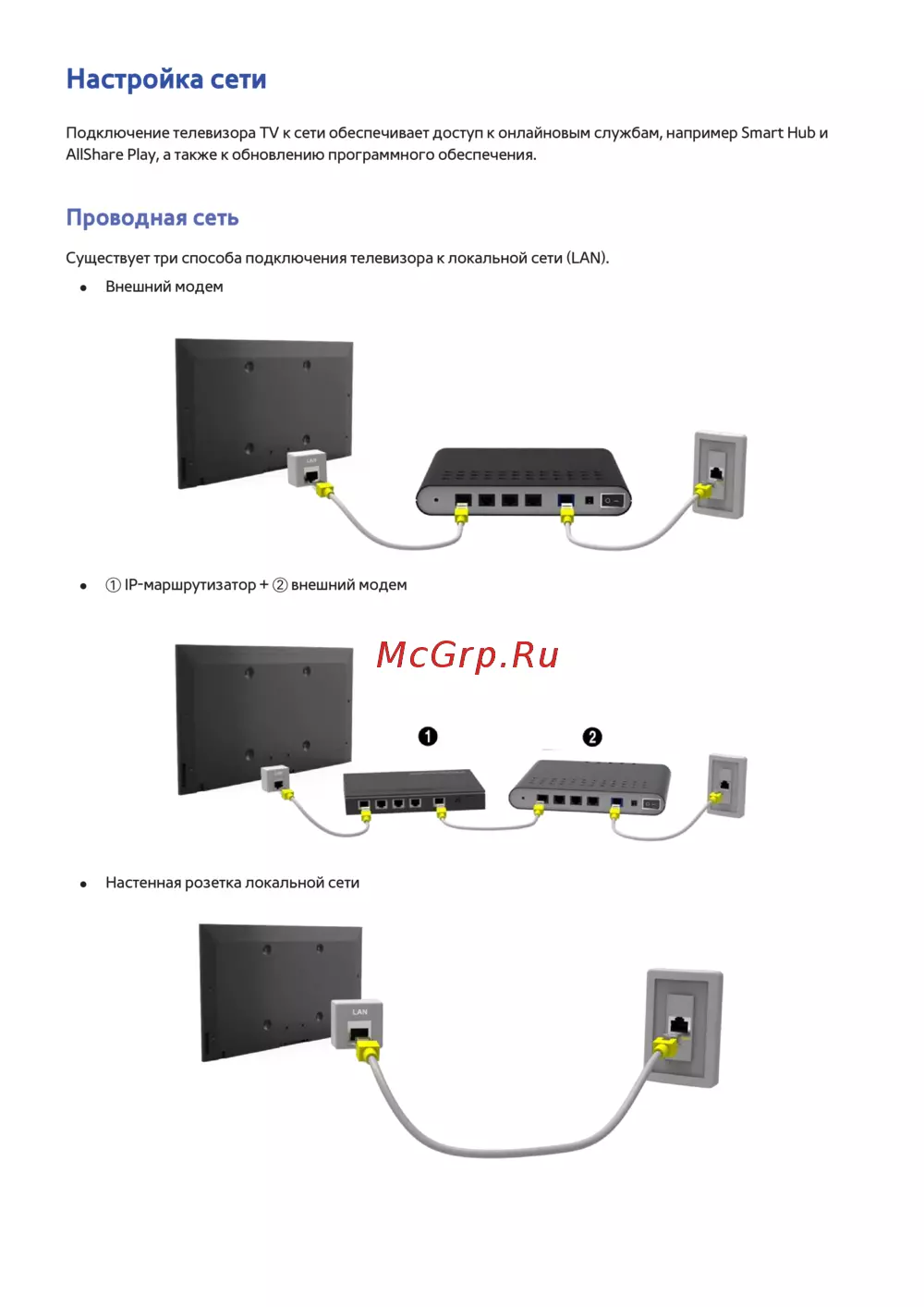 Подключение телевизора TV к сети обеспечивает доступ к онлайновым службам, например Smart Hub и