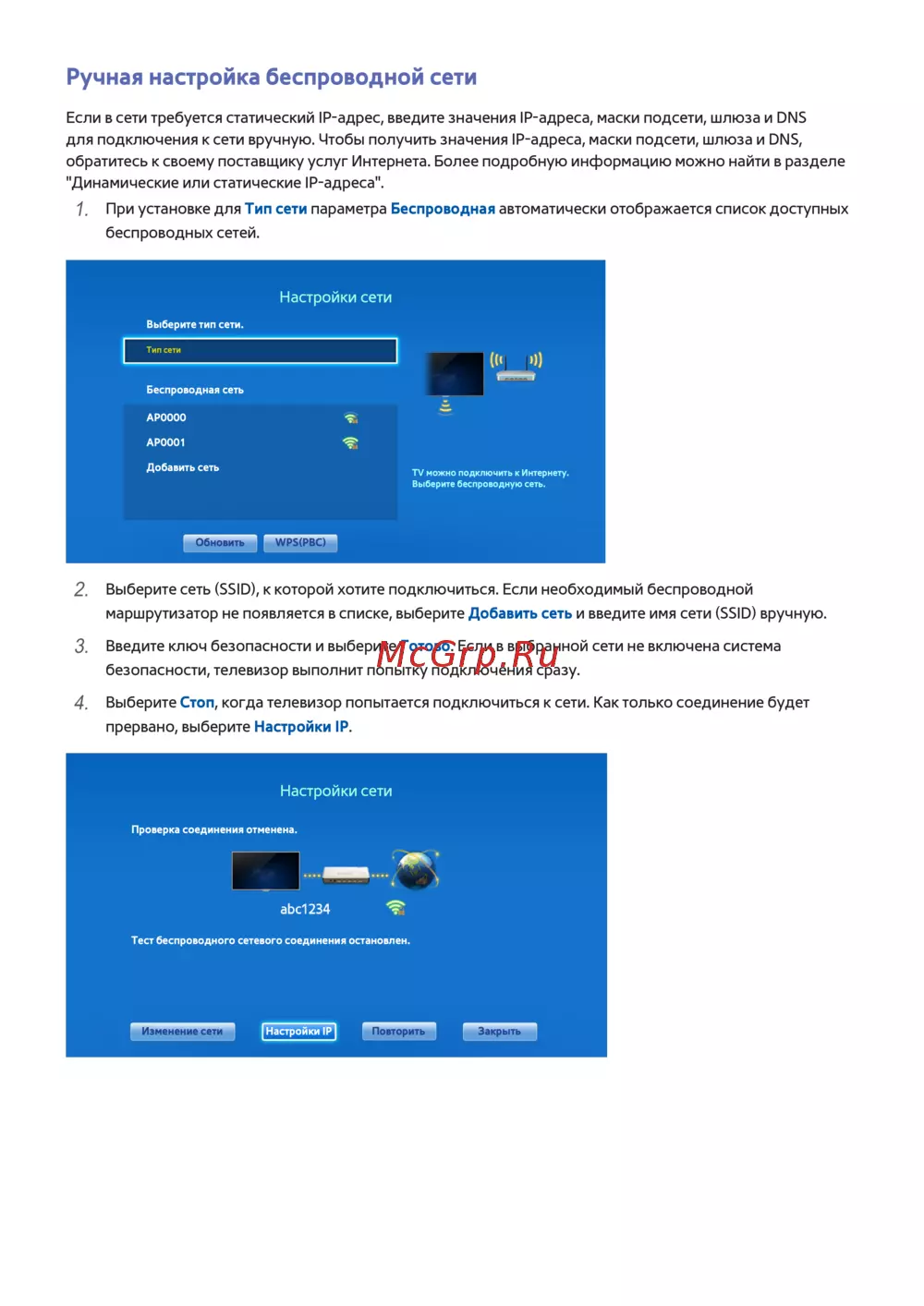 Samsung UE32F5300AK — ручная настройка беспроводной сети: пошаговое руководство [42/194]