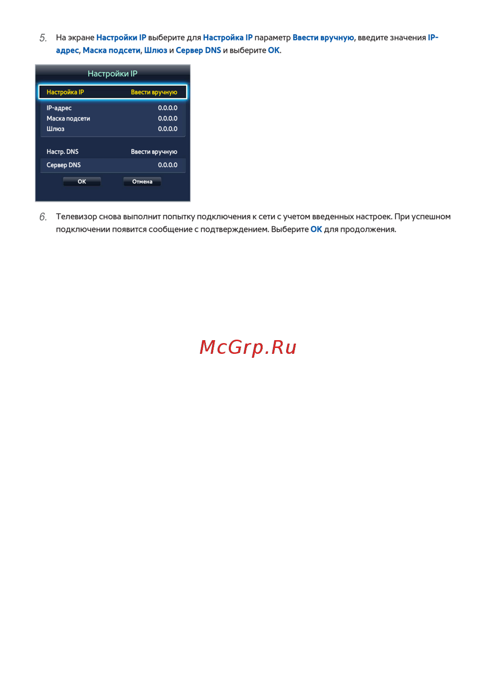 На экране Настройки IP выберите для Настройка IP параметр Ввести вручную, введите значения IP-