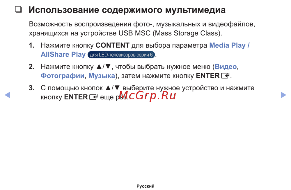 Samsung UE40EH6037K [132/190] Использование содержимого мультимедиа
