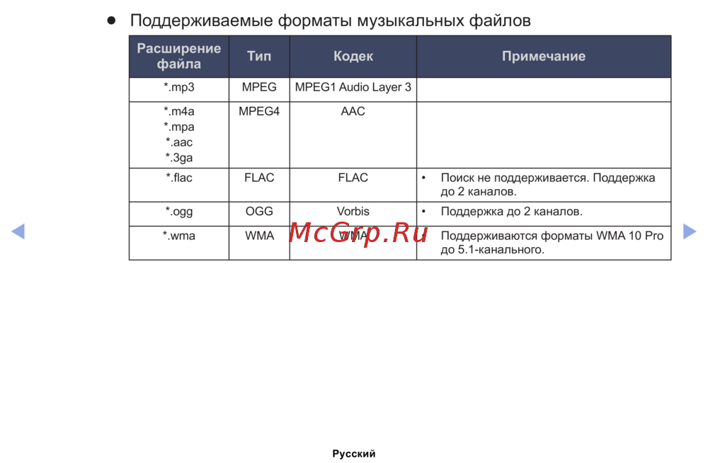 *.wma WMA WMA • Поддерживаются форматы WMA 10 Pro