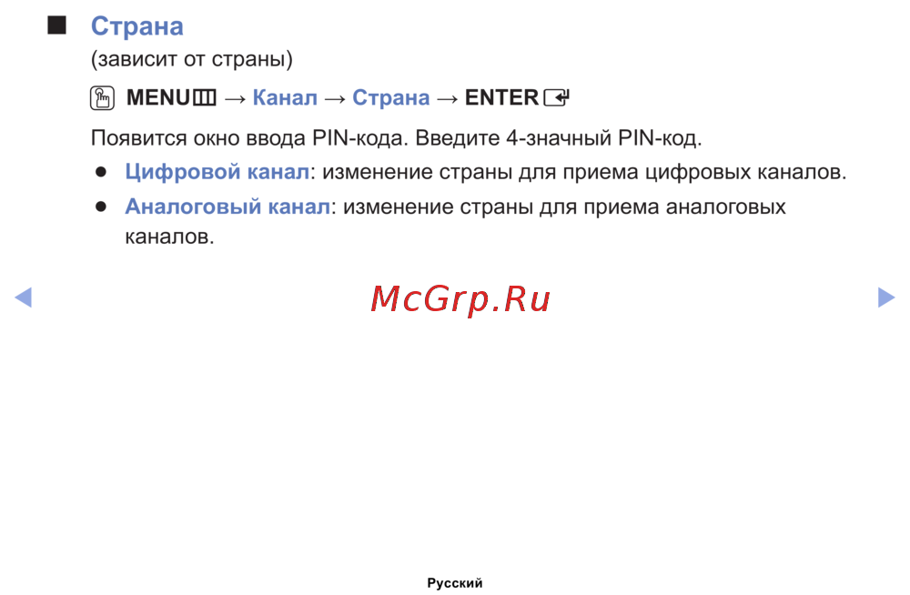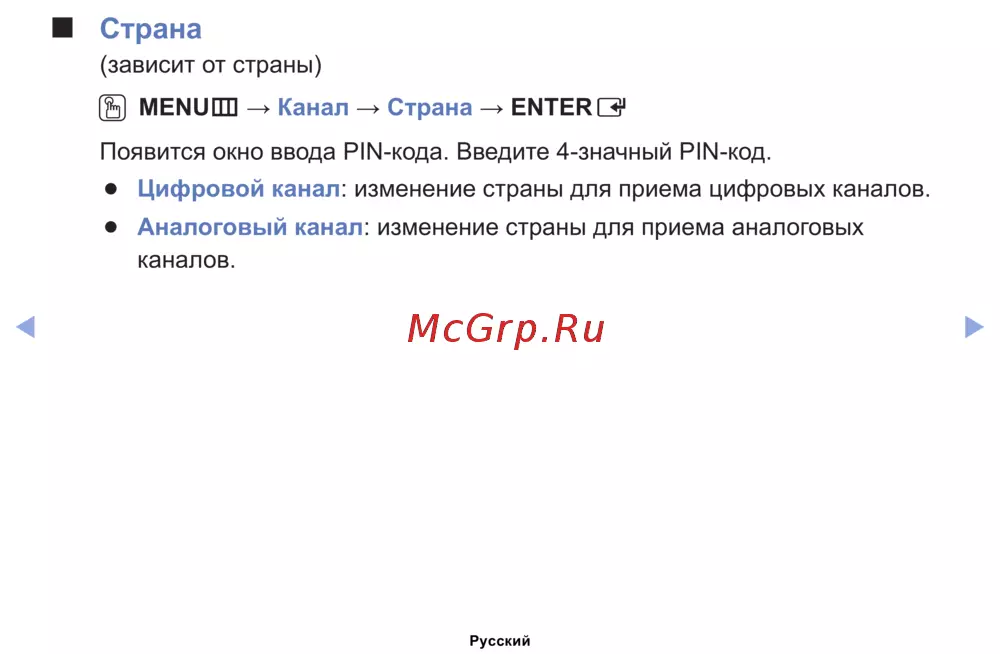 Цифровойканал: изменение страны для приема цифровых каналов.