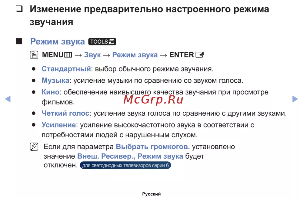 Samsung UE40EH6037K — настройка режимов звучания для оптимального прослушивания [46/190]