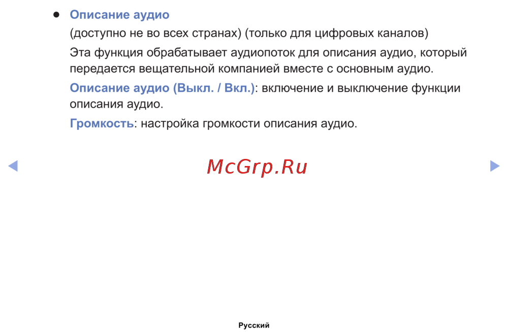 Описаниеаудио(Выкл./Вкл.): включение и выключение функции