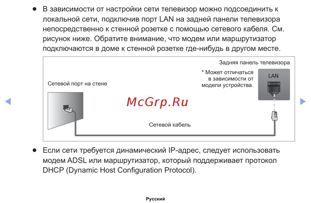 - Порт локальной сети на задней панели телевизора к ip устройству совместного доступа которое подсоединено к внешнему модему для подключения используйте сетевой кабель см рисунок ниже p.60