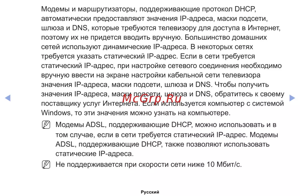 шлюза и DNS, которые требуются телевизору для доступа в Интернет,