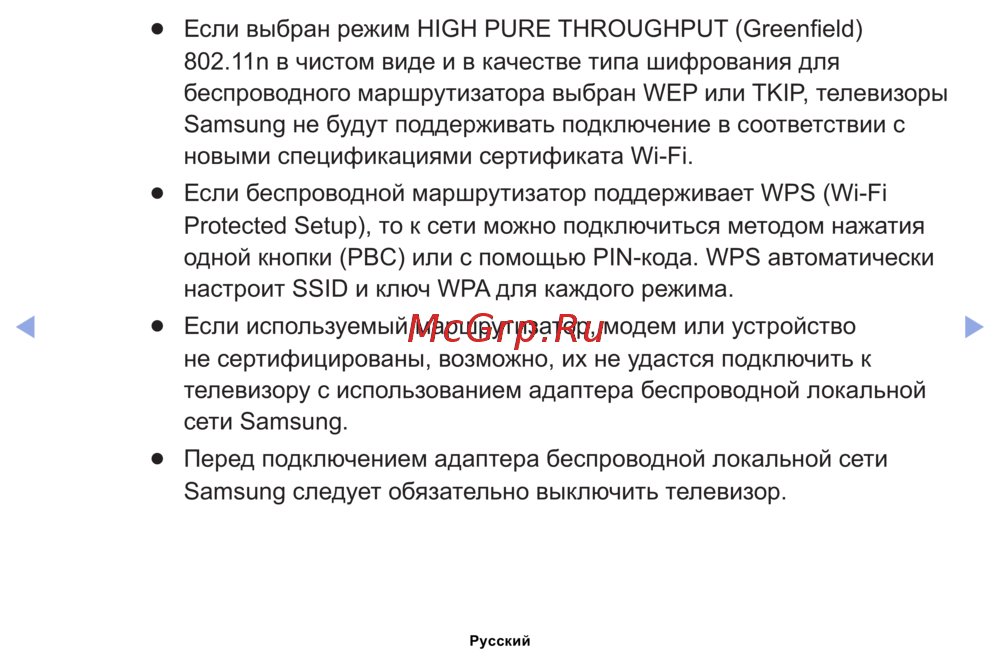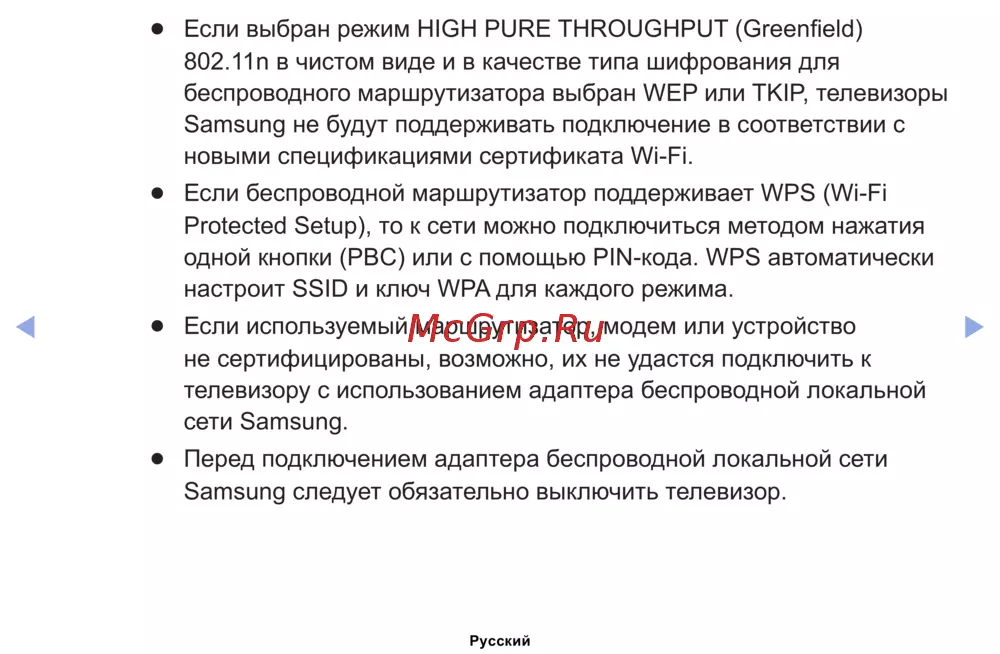 беспроводного маршрутизатора выбран WEP или TKIP, телевизоры