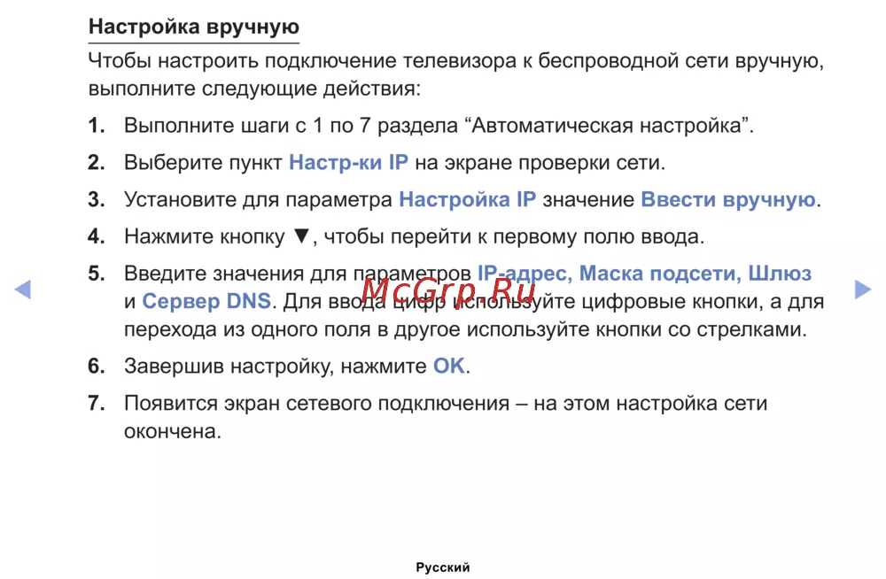 Узнайте, как вручную настроить подключение телевизора к беспроводной сети. Следуйте простым шагам для ввода параметров IP-адреса и других настроек.