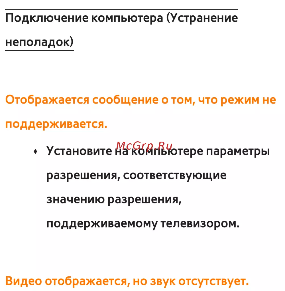 Подключение компьютера (Устранение
