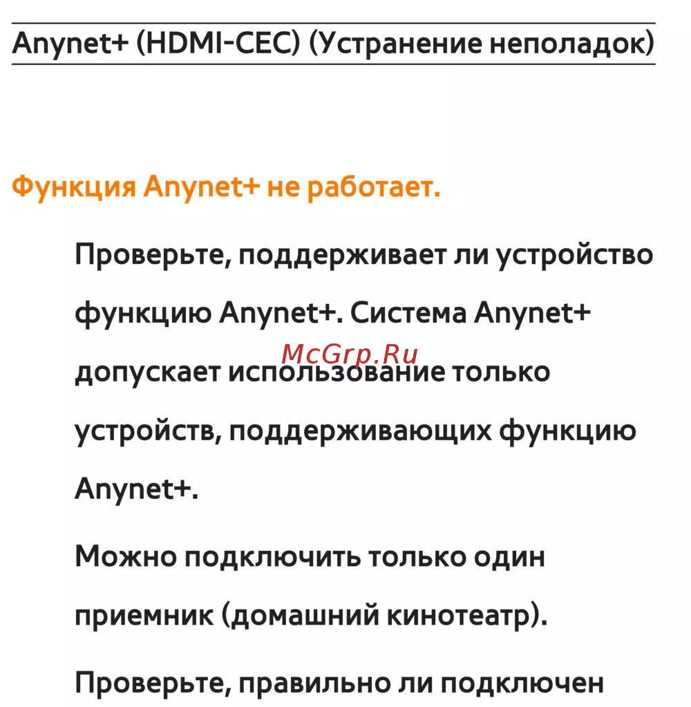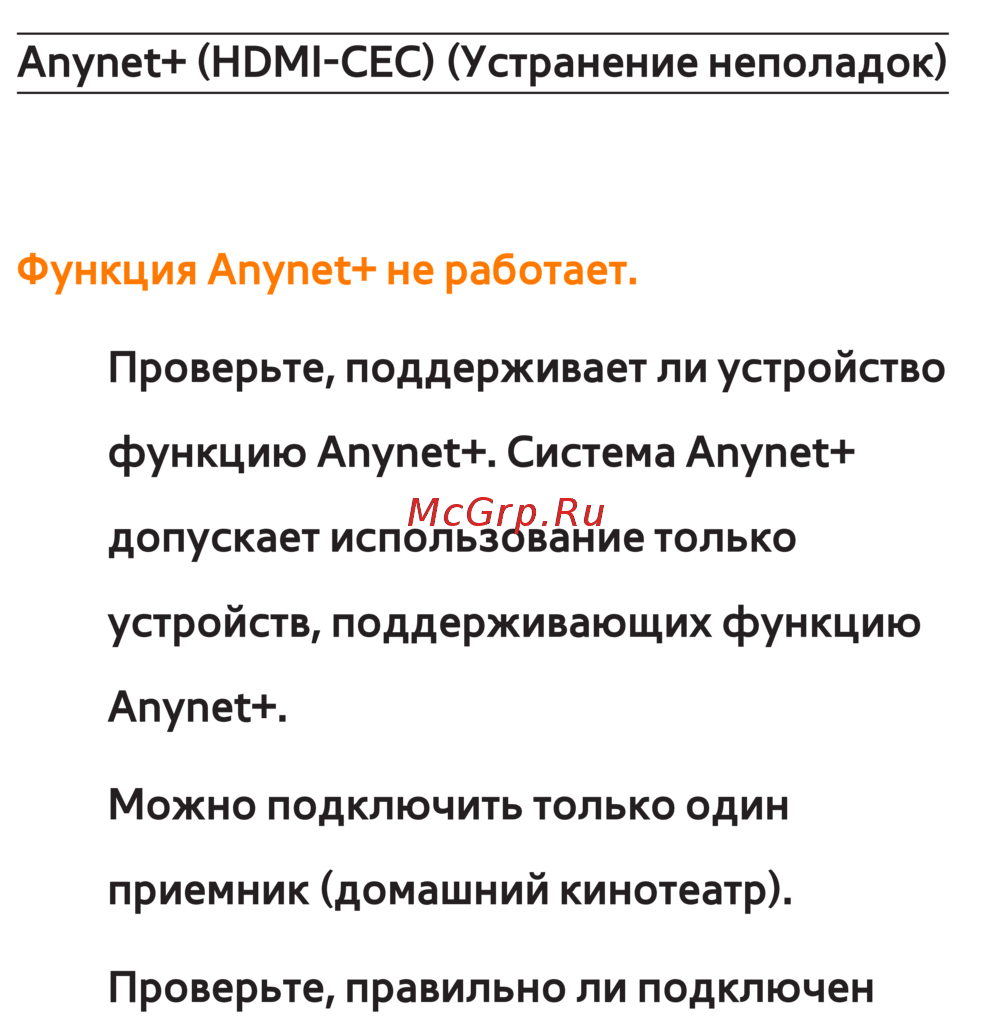 Anynet+ (HDMI-CEC) (Устранение неполадок)